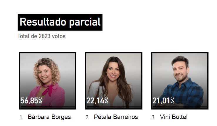 Com isso a roça ficou formada entre Bárbara, Pétala e Vini. O portal do Uol mostra quem deve ser o eliminado da semana: