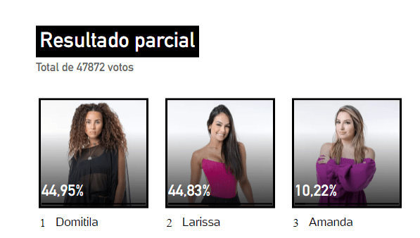 A casa votou e Domitila foi a mais votada. Domitila tinha o contragolpe e chamou Larissa também para o paredão. O portal do UOL fez uma enquete que mostra quem vai sair terça-feira, confira!