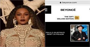 A cantora internacional, Beyoncé, usou o seu site para homenagear e lamentar a morte do seu grande fã. A cantora norte-americana desejou que Paulo Gustavo descansasse em paz.