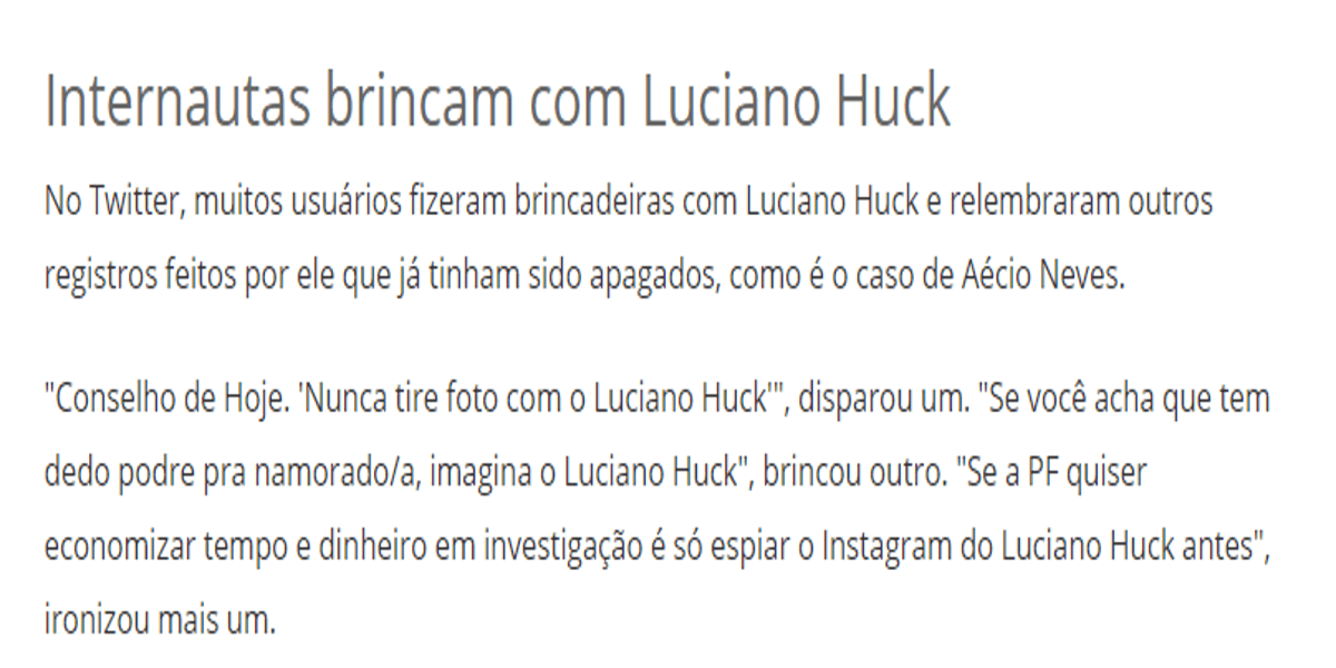 Luciano Huck deletou a imagem que ele tinha abraçado a Robinho em seu perfil no Instagram. Os usuários das redes sociais chegaram a alertar as pessoas para que não tirem fotos ao lado de Huck, já que ele aparece na companhia de várias pessoas com problemas na Justiça. Confira: