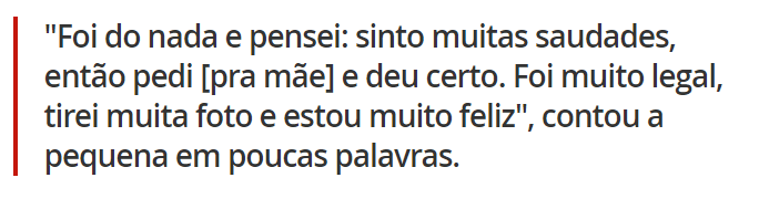 Ao ser questionada sobre seu pedido Rhayanna disse que sente muitas saudades do pai e então pediu ele de presente para a mãe. Veja: