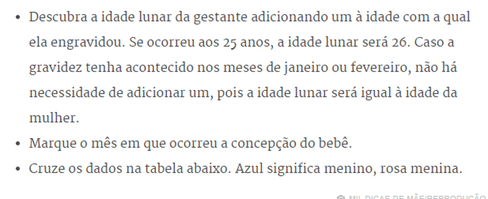 O truque milenar é bem simples, basta cruzar os dados da idade lunar (chinesa) da futura mamãe com o mês da concepção.
