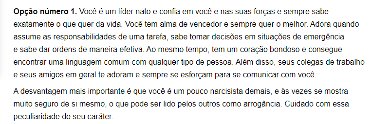 Agora que você escolheu, veja o que diz sobre sua personalidade, logo abaixo:
