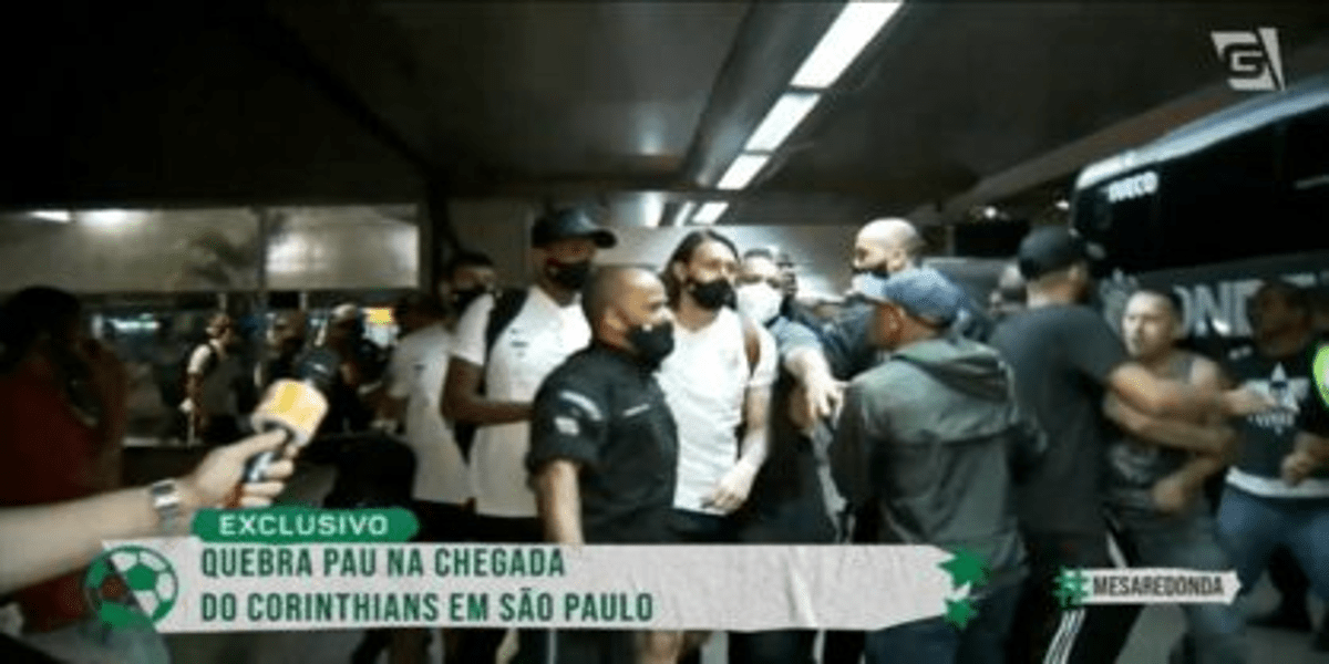 Uma equipe da ‘TV Gazeta’, que estava no saguão do aeroporto registrou toda a confusão. Seguranças da equipe do Timão e do aeroporto tentaram apaziguar a situação que logo fugiu do controle.